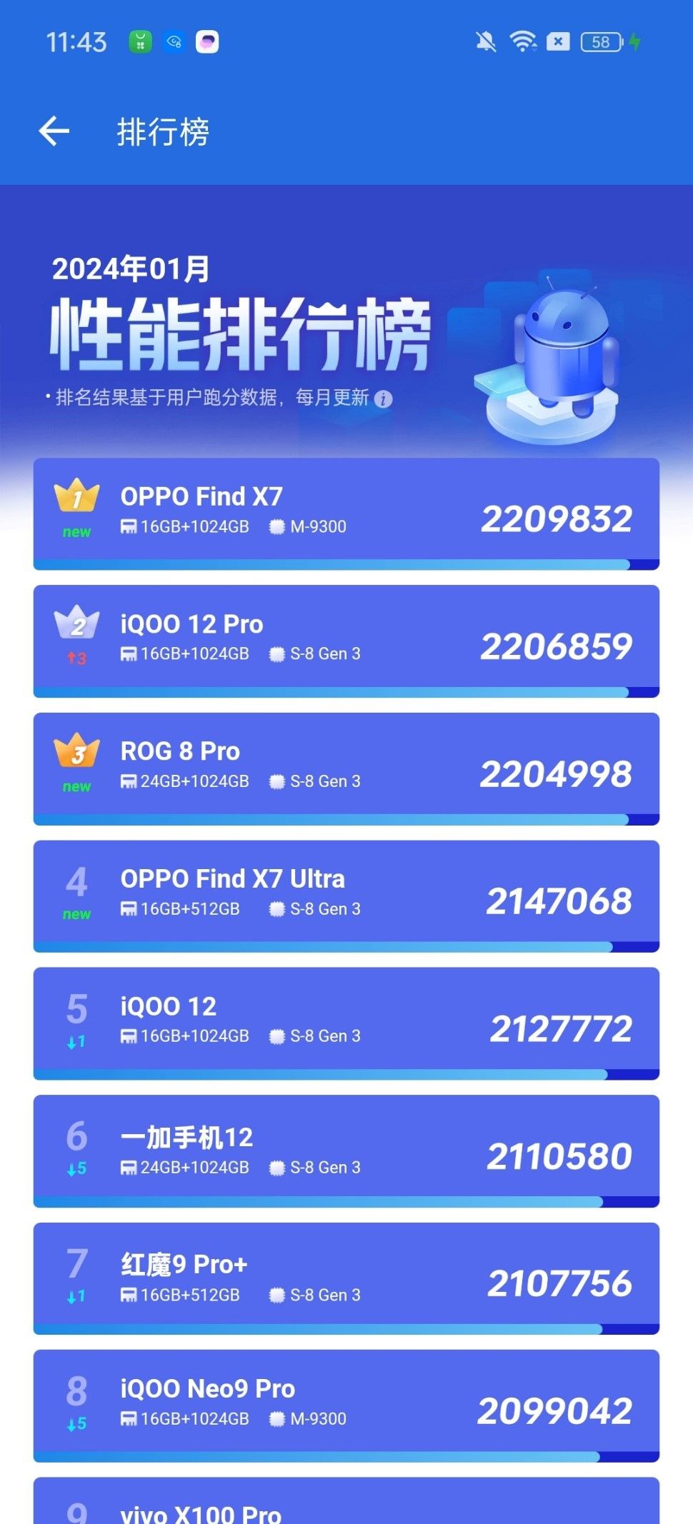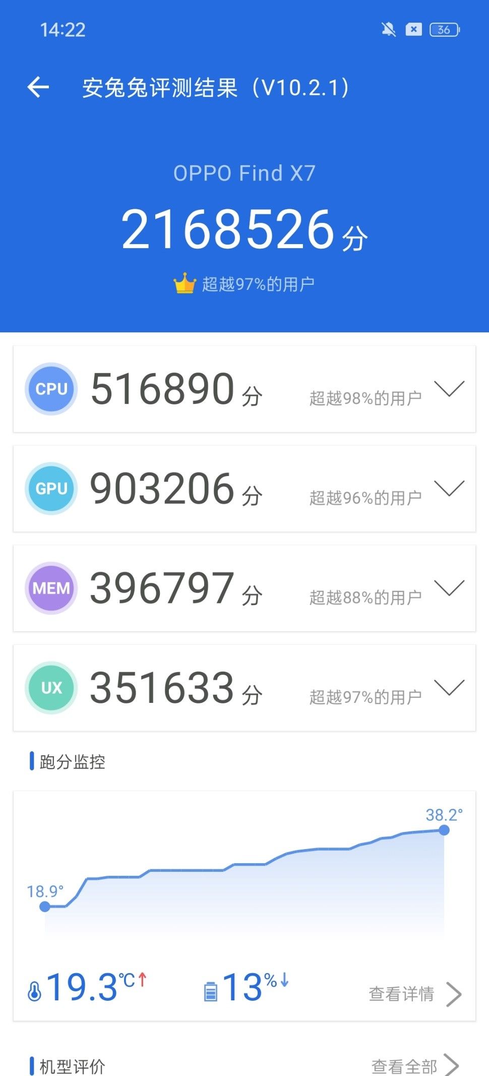 另外,用安兔兔跑分來看,OPPO Find X7得到了2168526的成績。