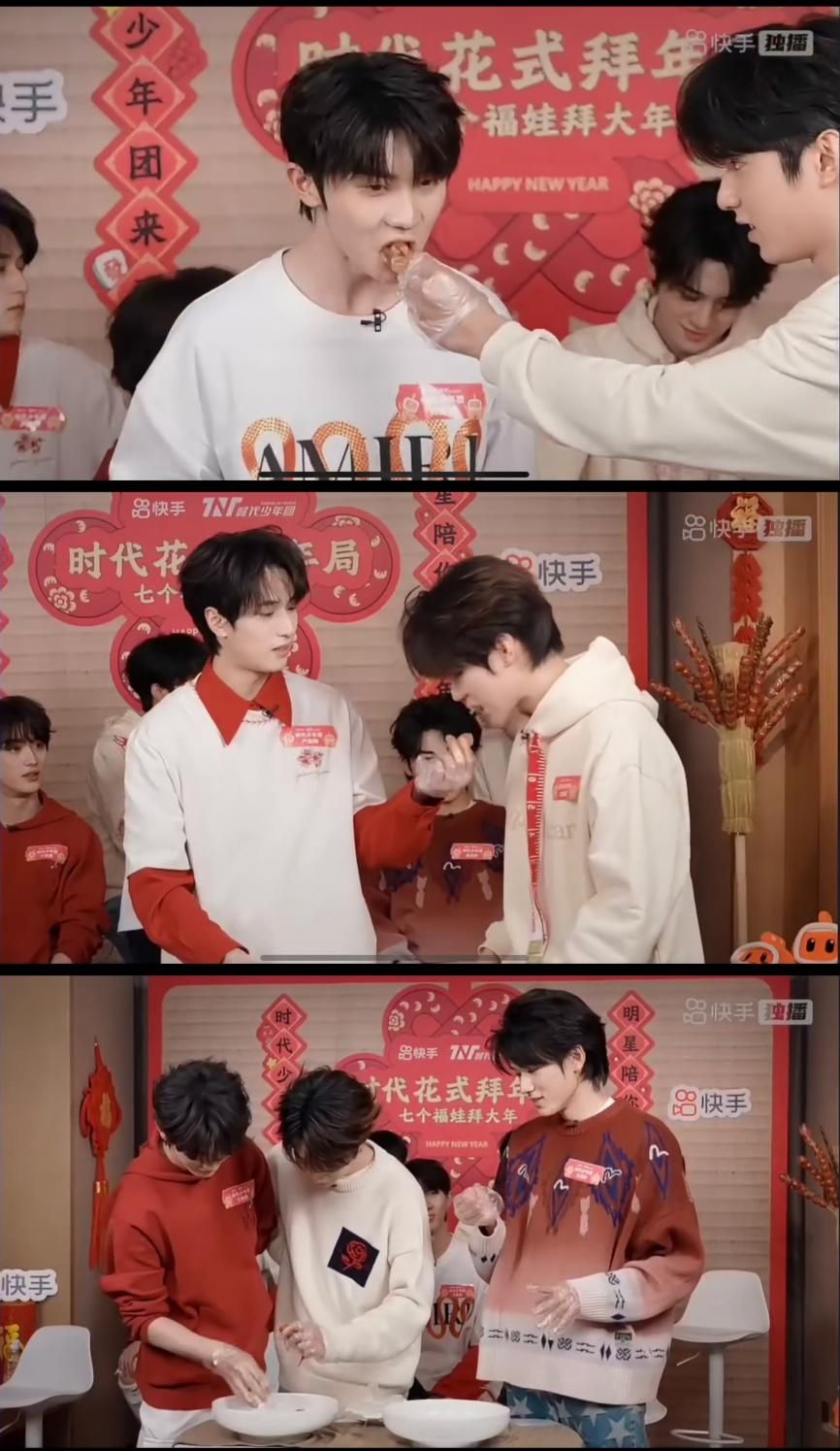 春節金曲是全國共通的,團年飯卻各有特色。直播中,七位少年分別組成“快手”與(yu) “快嘴”組合進行剝蝦吃蝦大挑戰,嚴(yan) 浩翔還現場開啟了如何快速剝蝦教學,現場投喂張真源再留“竹馬”名場麵。