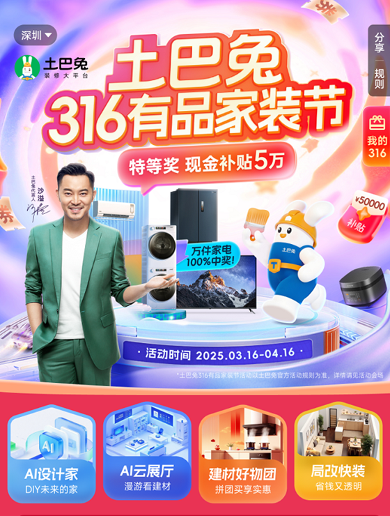 作為(wei) 土巴兔連續5年打造的一項大促IP,今年的316有品家裝節在此前基礎上做了優(you) 化升級,AI元素貫通於(yu) 裝修全流程,讓這場裝修大促更富科技感,加之土巴兔持續強化的保障服務,以及大幅度的優(you) 惠補貼舉(ju) 措,為(wei) 家裝用戶帶來一場真正意義(yi) 上的便捷且舒心的裝修體(ti) 驗。