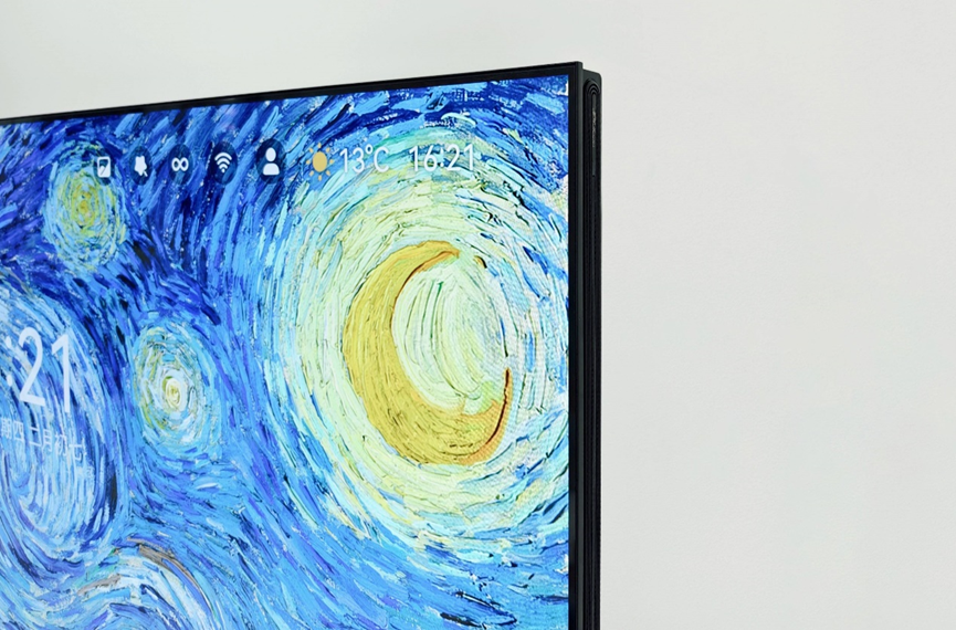 我們(men) 這次體(ti) 驗的是75吋產(chan) 品。一體(ti) 純平背板的設計和<60mm的超薄機身,讓他更適合掛牆;能貼牆安裝,縮短了打理機身背後空間的時間;配合極窄邊框,18新利正网和居室空間能夠有更好的融合,觀看時也能獲得不受邊框幹擾的大視野。