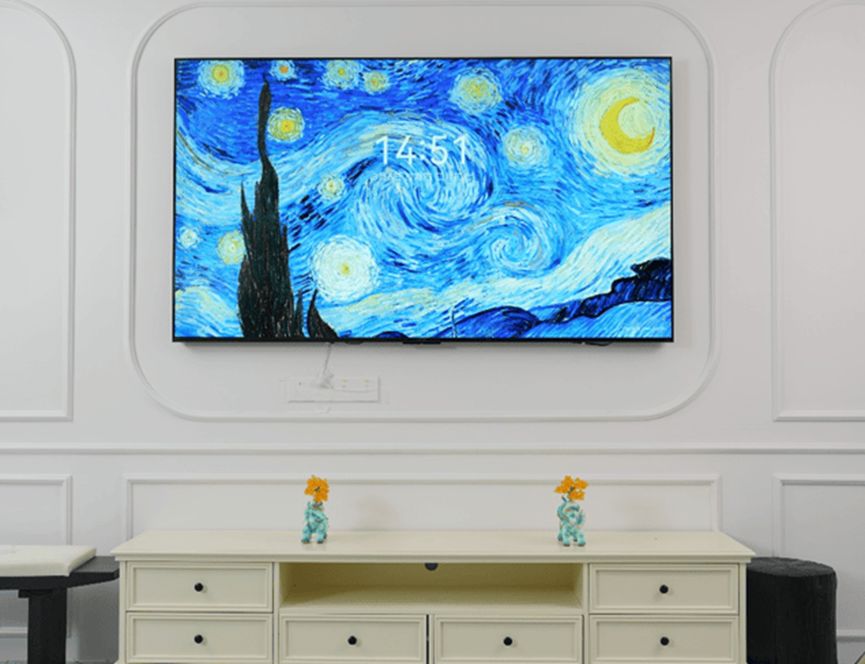 硬件的簡約造型,還隻是康佳G9W裝點生活空間的基礎。通過內(nei) 置包含名畫、風景在內(nei) 的靜態、動態壁紙,在待機時,可以化身“電子壁畫”,就連梵高的星空都能“打包”回家,且隨時可以更換。