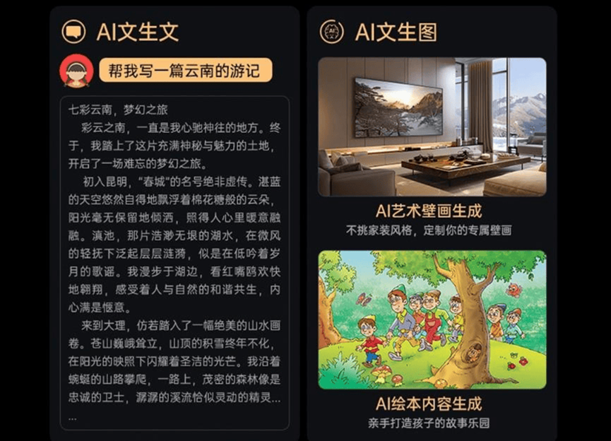 比如,你可以讓AI幫你寫(xie) 一篇雲(yun) 南的遊記,當他寫(xie) 到昆明的春城名號絕非虛傳(chuan) ,大理的絕美山水如同畫卷,再把滇池的浩渺、蒼山的積雪這些細節一一描述,你會(hui) 覺得,嘿,有點兒(er) 意思!當然了,最好不要讓家裏的小朋友直接拿去用,用來拓展思路,還是可以的。